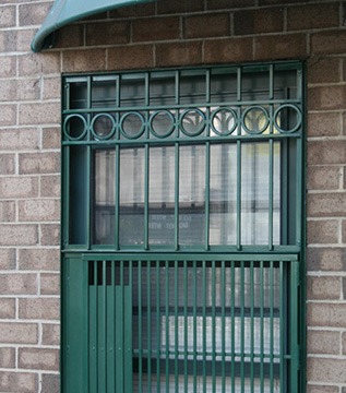 Security window gates installed on ground-floor windows for added protection.